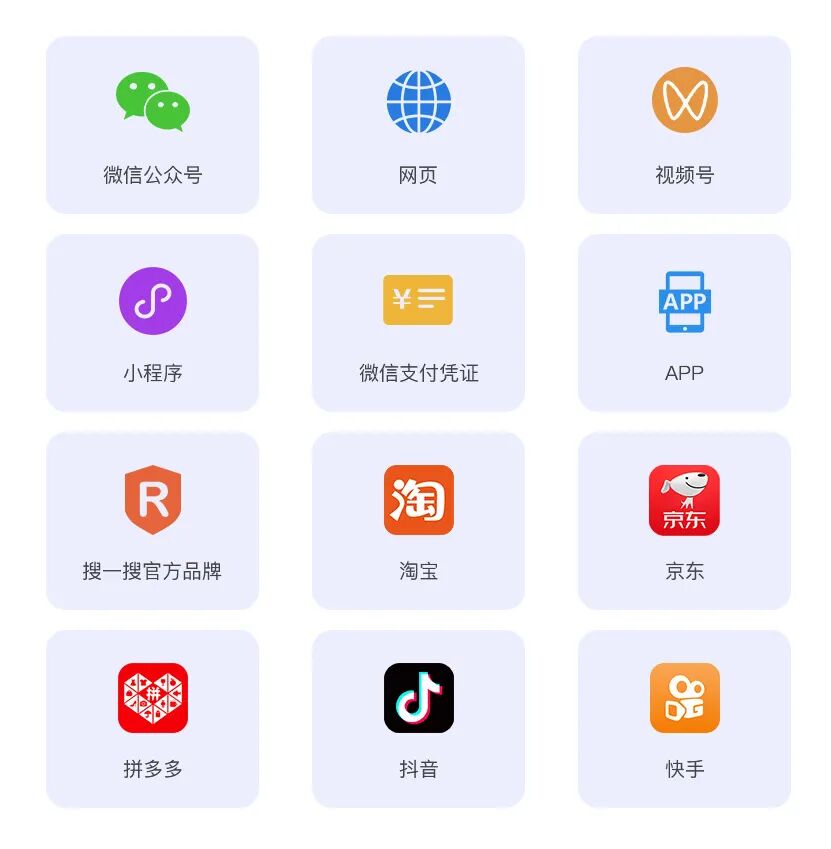 支持多场景接入,包括视频号、小程序、公众号、微信支付、APP、网页等