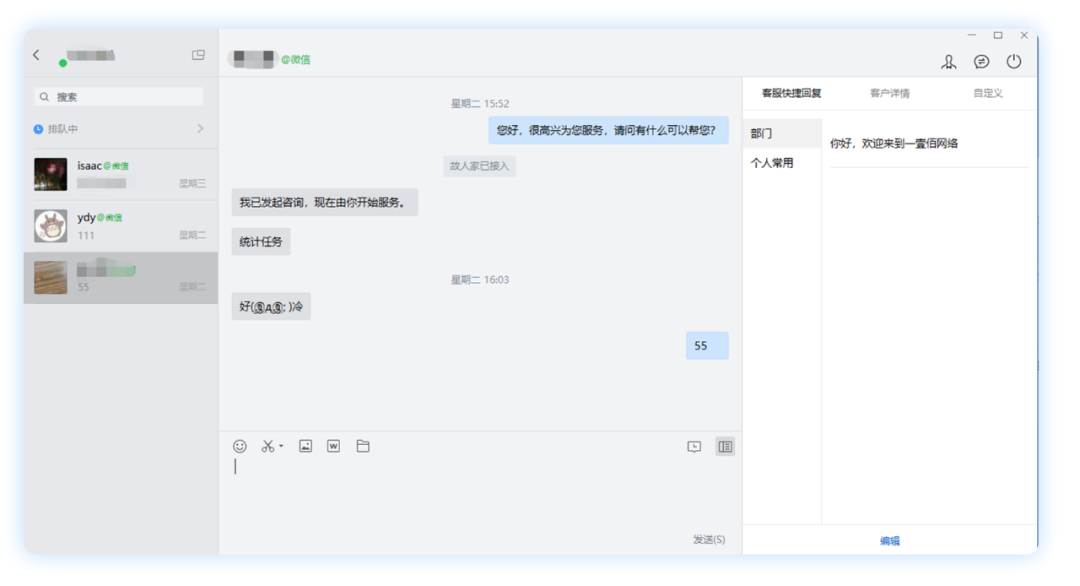 客服人员可以依据需要个性化部门或者个人的快捷回复内容,提高回复效率
