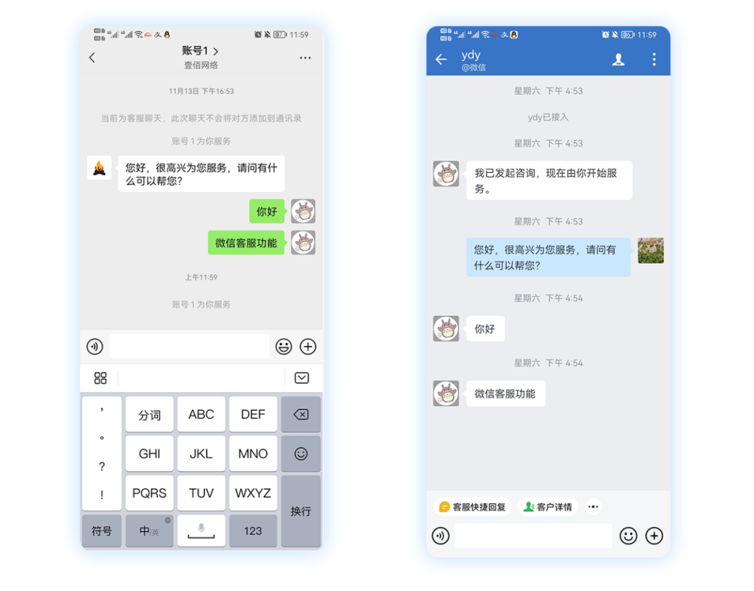 企业可以在微信内、外各个场景中接入微信客服,全方位接待客户咨询,无需验证或添加好友即可回复客户咨询的问题,在给客户带来更便捷、快速的优质服务的同时,方便企业了解客户潜在诉求,提升用户体验和用户转化率。