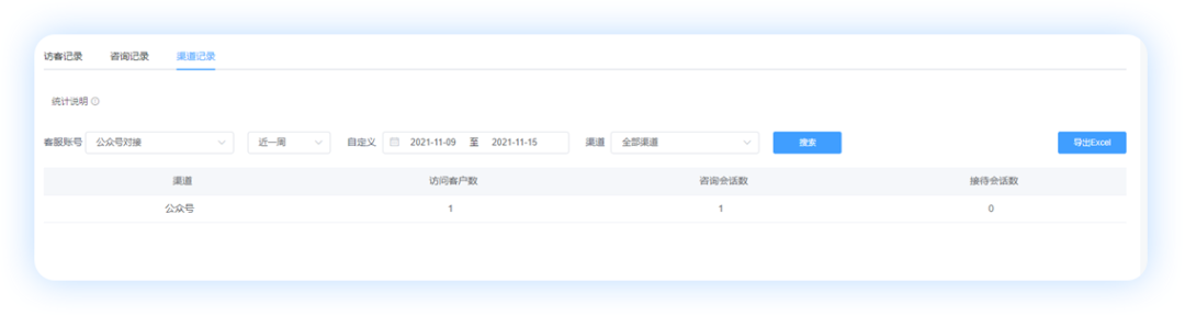 多维度统计细化到每个渠道和每个客服与每个客户的接待数据,包括访问数、接待数、咨询记录,为企业管理者评估优化客服团队的服务水平提供精准数据支持。